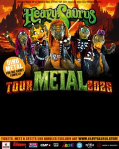 Vom Kinderzimmer bis aufs legendäre Wacken Open Air, vom Familienausflug bis zur Festivalbühne, von kleinen Clubs bis zu großen Hallen – HEAVYSAURUS spielen echten Metal für Groß und Klein. Vier Dinosaurier und ein Drache rocken die Bühnen mit einer Show, die Kinder wie Erwachsene gleichermaßen die „Pommesgabel“ recken lässt. Am 30.01.2026 erscheint das neue Album „METAL“ mit 15 brandneuen Songs. Anschließend gehen die fünf grüngeschuppten Helden mit der METAL Tour 2026 auf große Konzertreise, mit neuen Songs, neuer Show und altbewährter Dino-Power!